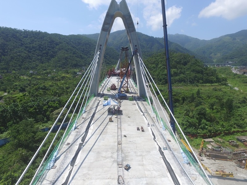 The Baimei Ridge Landscape Bridge, measuring 340 meters in length, is the first twin-tower steel webback bridge in Taiwan. Inspired by the shape of a grain of rice, the unique pylon design presents considerable construction challenges. The box girder adopts corrugated steel webs, a composite material solution that reduces the superstructure weight and mitigates seismic impacts. Upon completion, the bridge not only serves as a cultural and visual landmark but also represents a major advancement in Taiwan’s bridge design and construction capabilities.