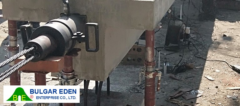 On December 19, 2019, Bulgar Eden Enterprise Co., Ltd. (BE) partnered with National Chung Hsing University (NCHU) for an academic-industry collaboration to study the “Interaction between Load and Post-Tensioning Prestressing Systems.” The research utilized a single I-beam with four 12.7mm strands, targeting a stress force of 12 tons per strand. Strain gauges were embedded throughout the beam to monitor changes in strain under different stages of prestressing and loading.