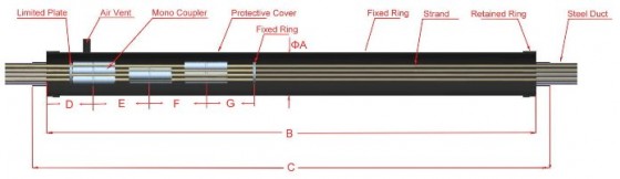 Movable coupler anchorage is used for connecting unfinished strength of strand. The characteristic is to combine multi-mono coupler as one anchorage. The length of outer protective cover could be adjusted for any design.