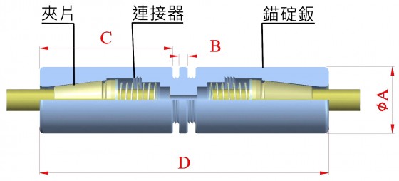 活動續接器之功能在把預力鋼絞線束與需延長但尚未施預力之的鋼絞線束連接起來。